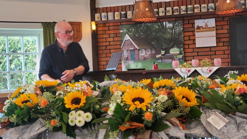 Nach einem Sektempfang und einer gemütlichen Kaffeetafel unterhielt Andreas Kathe vom Heimatverein Dinklage mit einem Vortrag über das historische Alt-Dinklage, mit Hilfe von historischen Fotografien aus den 1950er und 1960er Jahren.